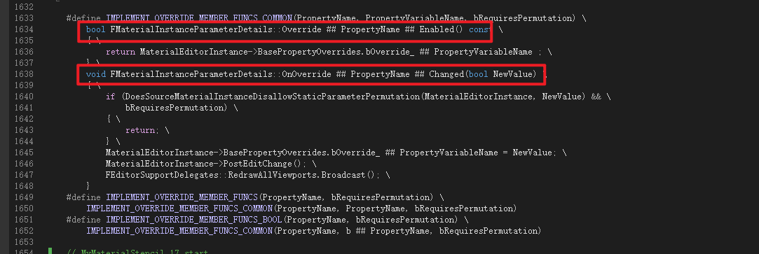 与UMaterial同理,UMaterialInstance继承自MaterialInterface,所以需要对虚函数进行重写。这里进行函数声明