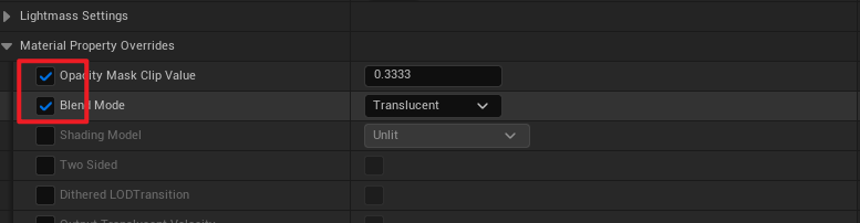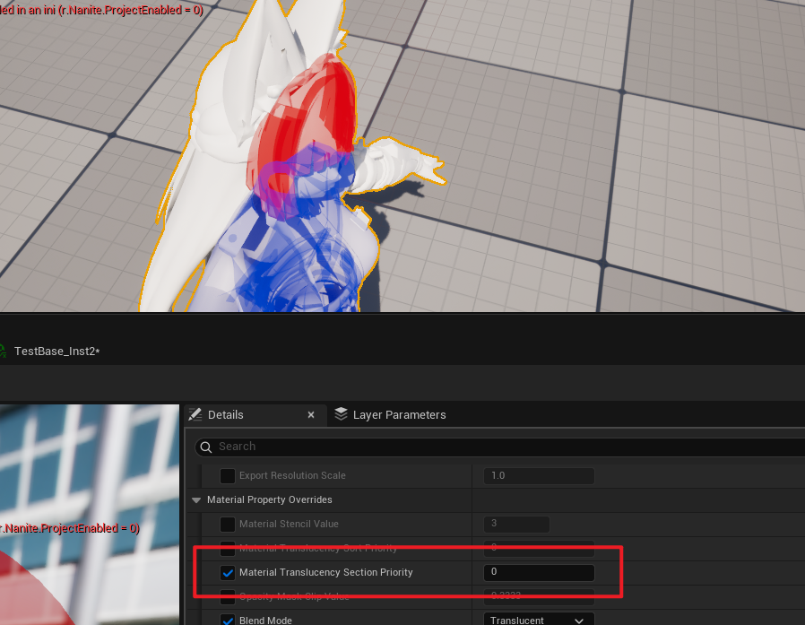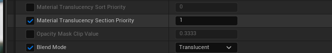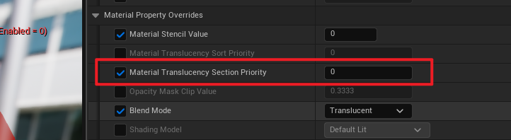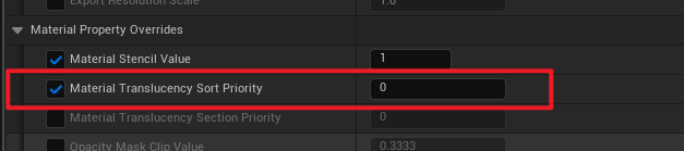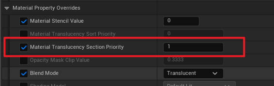 同样勾选MaterialTranslucencySectionPriority,值默认的0