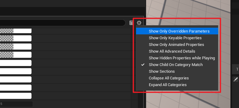 上面说的如果不理解,那么看下面这个图就可以理解了,Changed函数内if判断实际上也是对应这里的复选框,如果复选框勾选材质且实例不为静态且我们手动控制的bRequiresPermutation是true,那么就对MaterialEditorInstance中的bOverride_PropertyVariableName设置为我们复选框的输入的bool值,后面就可以进行传值操作