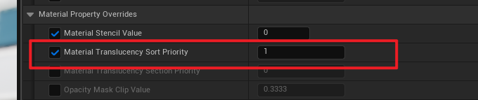 设置UMaterialInstance的更新函数中MaterialTranslucencySortPriority和MaterialTranslucencySectionPriority的初始值