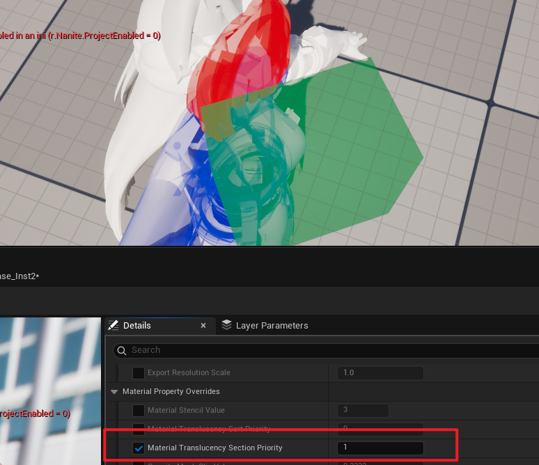 将红色材质MaterialTranslucencySectionPriority值设为1