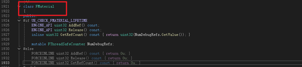 找到FMaterial类,前面说过,FMaterial做的工作就是实时查询UMaterial和UMaterialInstance的参数并进行进行处理,所以自然需要读取我们创建的MaterialStencil,那么就需要创获取函数来读取