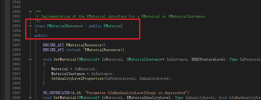 找到FMaterialResource类,它继承FMaterial类