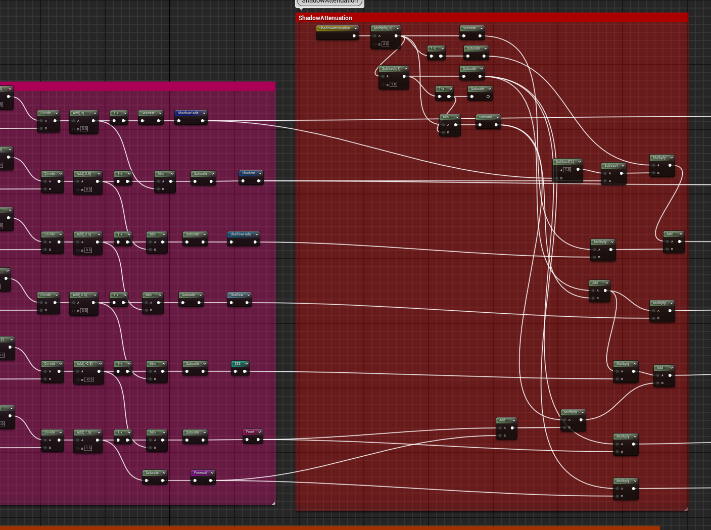 这里是代码方便对照节点 在BaseShadowAttenuation混合颜色中间进行混合 当前预览