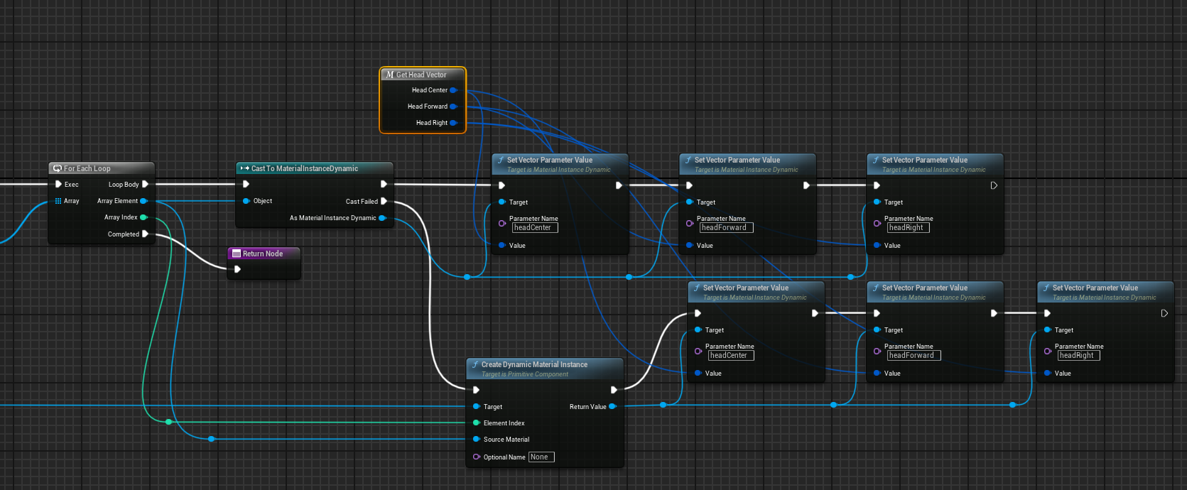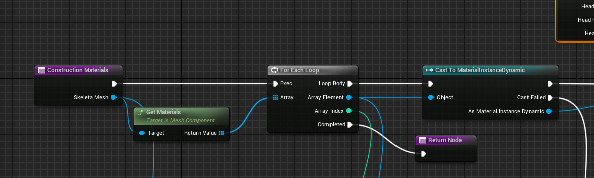 获取网格体组件所有的材质进行遍历,对材质进行类型判断是否为动态材质,如果是就直接传参,反之先创建动态材质再传参