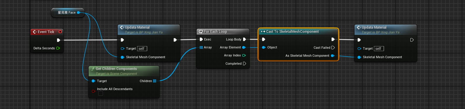 根网格和子网格都进行调用创建动态材质,但构造函数只在物体生成时调用,不能实时更新,所以需要再创建一个更新材质函数