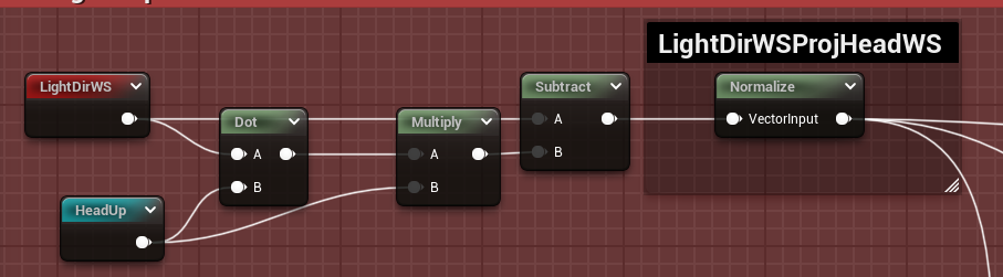 光向量点乘HeadUp得到lightDir在HeadUP上的投影长度,投影长度乘上HeadUp就得到在lightDir在HeadUP上的投影向量,lightdir减去lightDirProj就获得了从面部到光方向的向量
