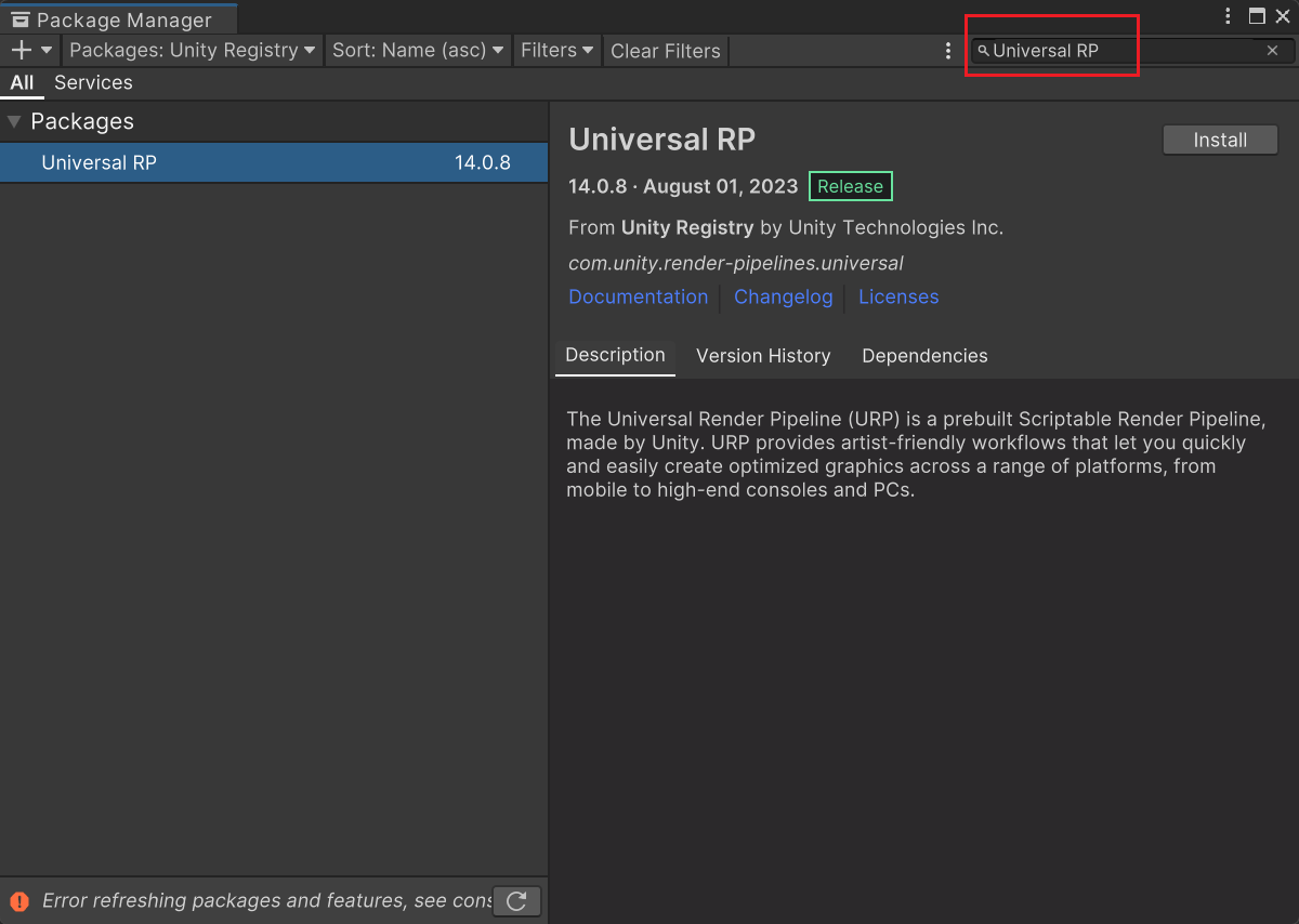 安装URP
