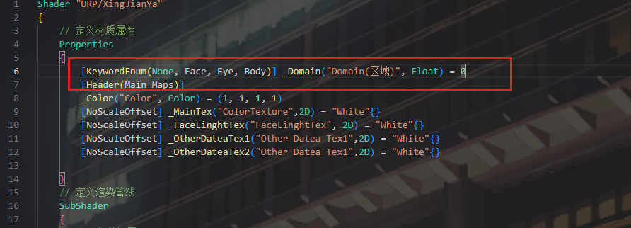 添加KeywordEnum对各个部分进行区分,添加贴图参数和颜色混合参数