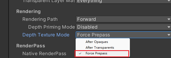 调整参数到Force Prepass,原来默认是AfterOpaques