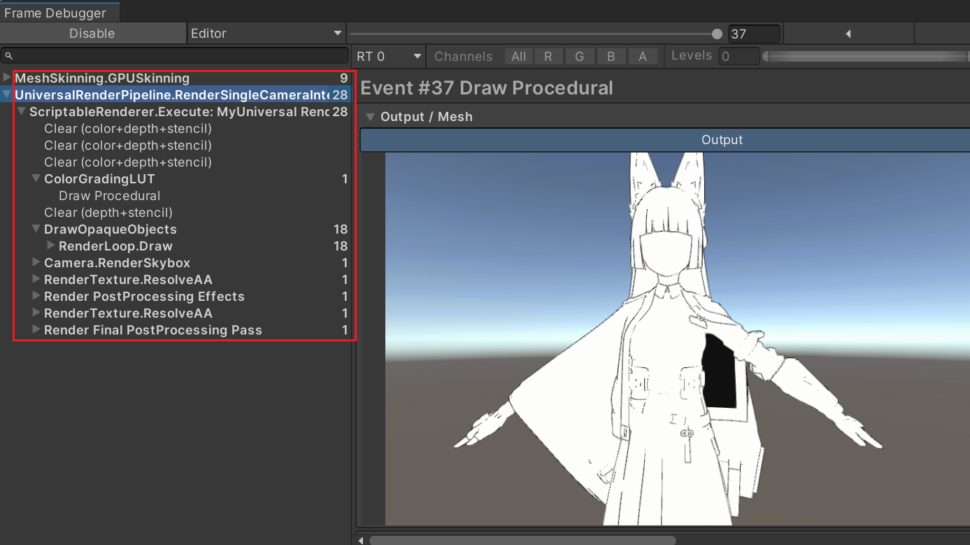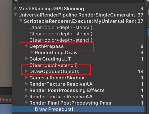 此时追加后在使用FrameDebug应该就正常了,DepthPrePass在绘制物体的Pass前面