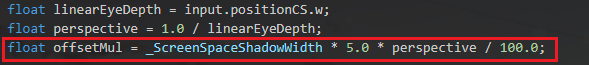 float offsetMul = _ScreenSpaceShadowWidth * 5.0 * perspective / 100.0;