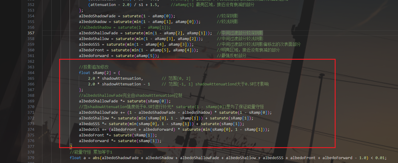 这里保证了能量守恒,将投影全部给了ShallowFade,Shadow部分保持不变。Shallowfade能量增加,Shallow能量减小了,这里计算特别复杂,需要画图分析