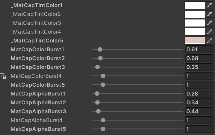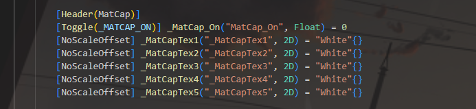 MatCapTintColor5:E0C8BF 第5个槽位是丝袜的材质,所以进行染色和开启反射,这里取消他的偏移,使它不按照物体UV进行偏移反射