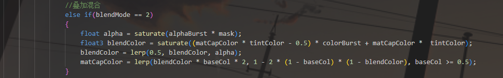 float3 blendColor = saturate((matCapColor * tintColor - 0.5) * colorBurst + matCapColor *  tintColor);