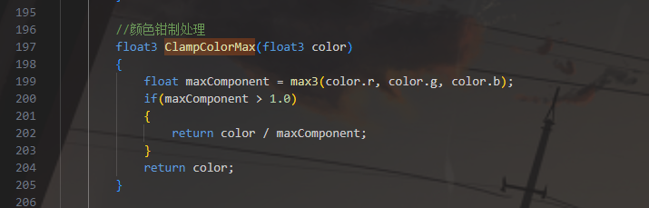 有了颜色Gamma矫正衰减系数,然后知道Gamma矫正的值后,就可以对颜色进行Gamma矫正了,但在这之前需要钳制颜色亮度,因为Gamma其实本质可以理解为Pow(Color,gamma),对于大于1的进行Pow会导致变得非常亮 这里函数内部对颜色各个分量取得最大值,如果大于1,就将整个颜色除以这个值进行压暗,保证颜色不变的情况下降低明度,钳制到1以下