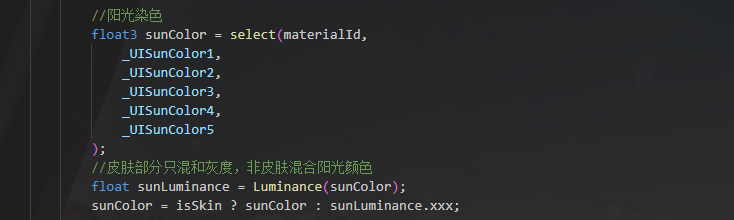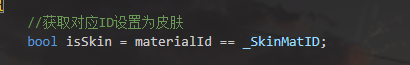 因为这里处理为皮肤和服装的背光强度是不一样的,所以进行划分,这里直接指定材质ID是皮肤