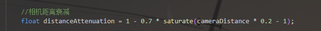 这一步是真正求边缘光的步骤,一般边缘光都是通过菲涅尔进行计算。因为这里需要对相机距离进行反馈,所以先计算相机距离