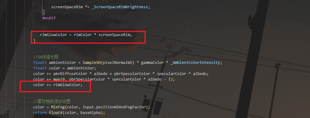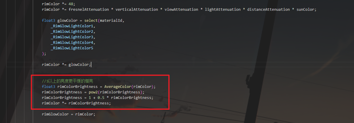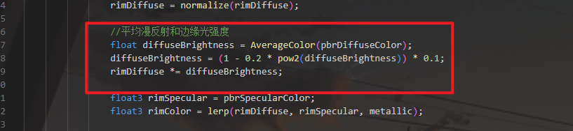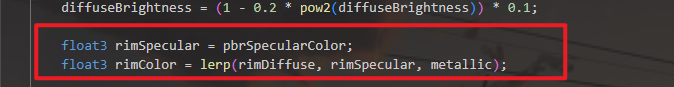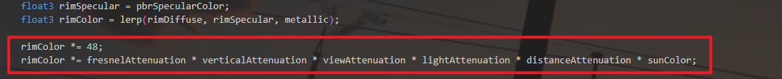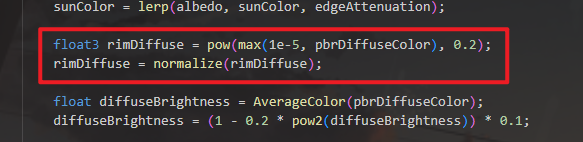 这里对边缘光的漫反射强度做处理,大概是平均边缘光的强度,漫反射强度越高,边缘光减弱